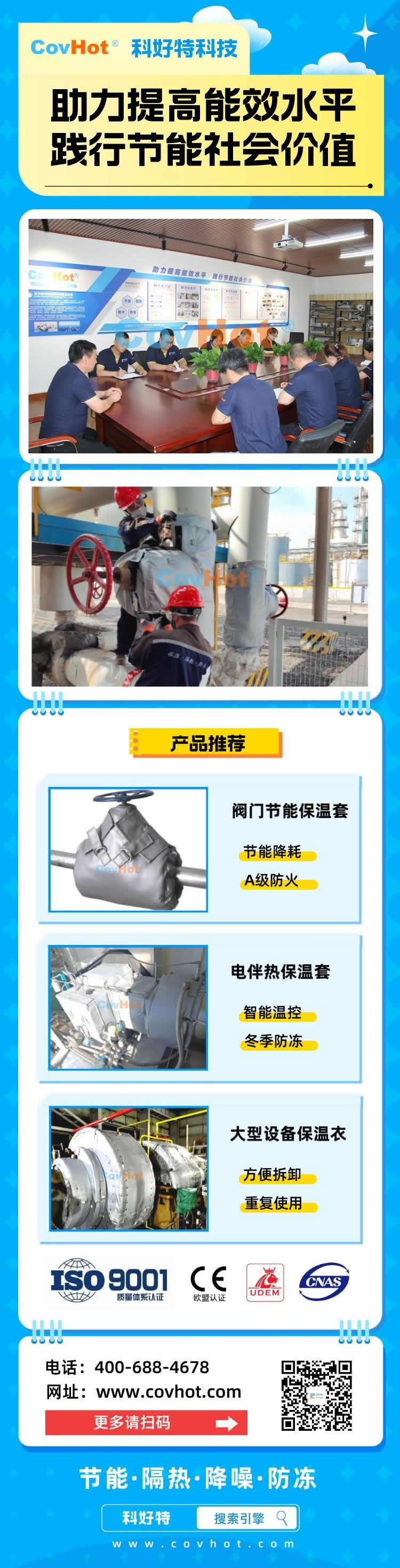 產(chǎn)品包括柔性可拆卸保溫套,異形設(shè)備隔熱套、閥門保溫衣,管道保溫套,板式換熱器保溫套,注塑機(jī)保溫套,反應(yīng)釜保溫套,罐體保溫衣,機(jī)器人防護(hù)服等,廣泛應(yīng)用于食品飲料、塑料機(jī)械、石油化工、冶金電力、建筑窯爐,煙草制藥,船舶航空等領(lǐng)域。特別適用于需要反復(fù)拆卸檢修的設(shè)備中,可以根據(jù)需要保溫設(shè)備的外形進(jìn)行自由定制,有效節(jié)能,改善工廠工作環(huán)境。