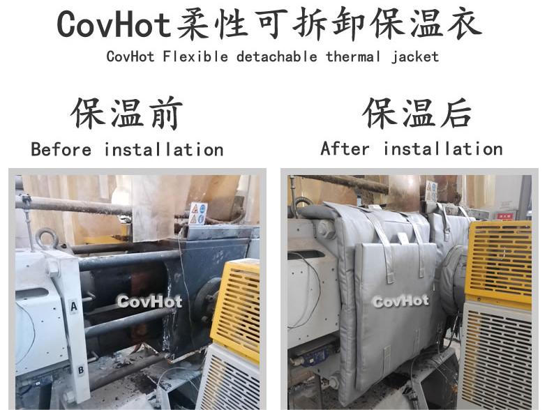 硫化系統(tǒng)中設(shè)備運行時的溫度較高,使用硫化機可拆式保溫衣是非常不錯的絕熱措施,能夠有效減少熱損失,改善生產(chǎn)車間夏季環(huán)境溫度,減冬季硫化機欠硫等情況。